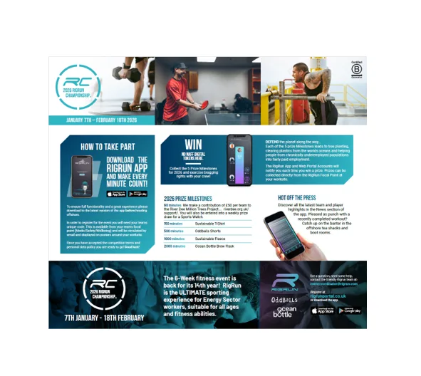 This can be used to promote RigRun at Sunday safety meetings and load onto your communal/mess TV’s